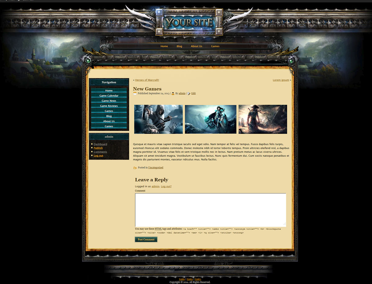 fantasy wordpress theme, gaming wordpress theme, browsergame wordpress theme, medieval wordpress theme, mmog wordpress theme, game wordpress theme