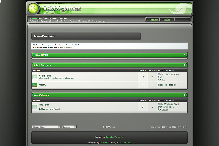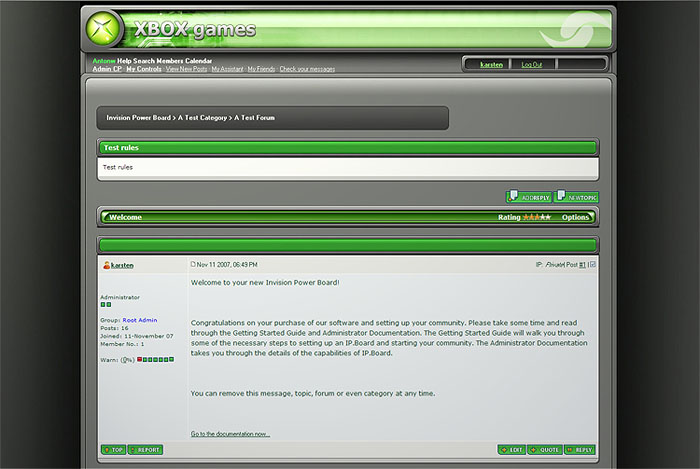 This is a xbox themed forum skin for Invision Power Board.All pages in this xbox games forum skin such as member profiles, new post etc are carefully designed. This xbox 360 forum skin comes with a complete set of themed green buttons. The skin can tile vertical and horizontal.